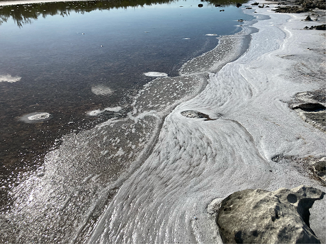 - White salt-pan evaporating before our eyes leaving a crystallizing brine-slurry along the shores