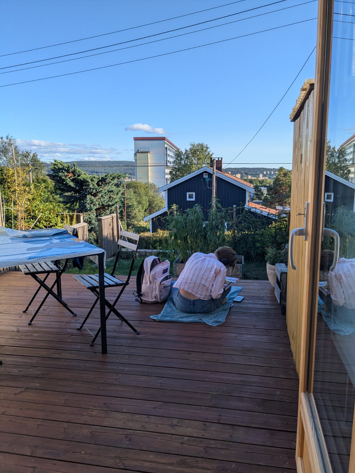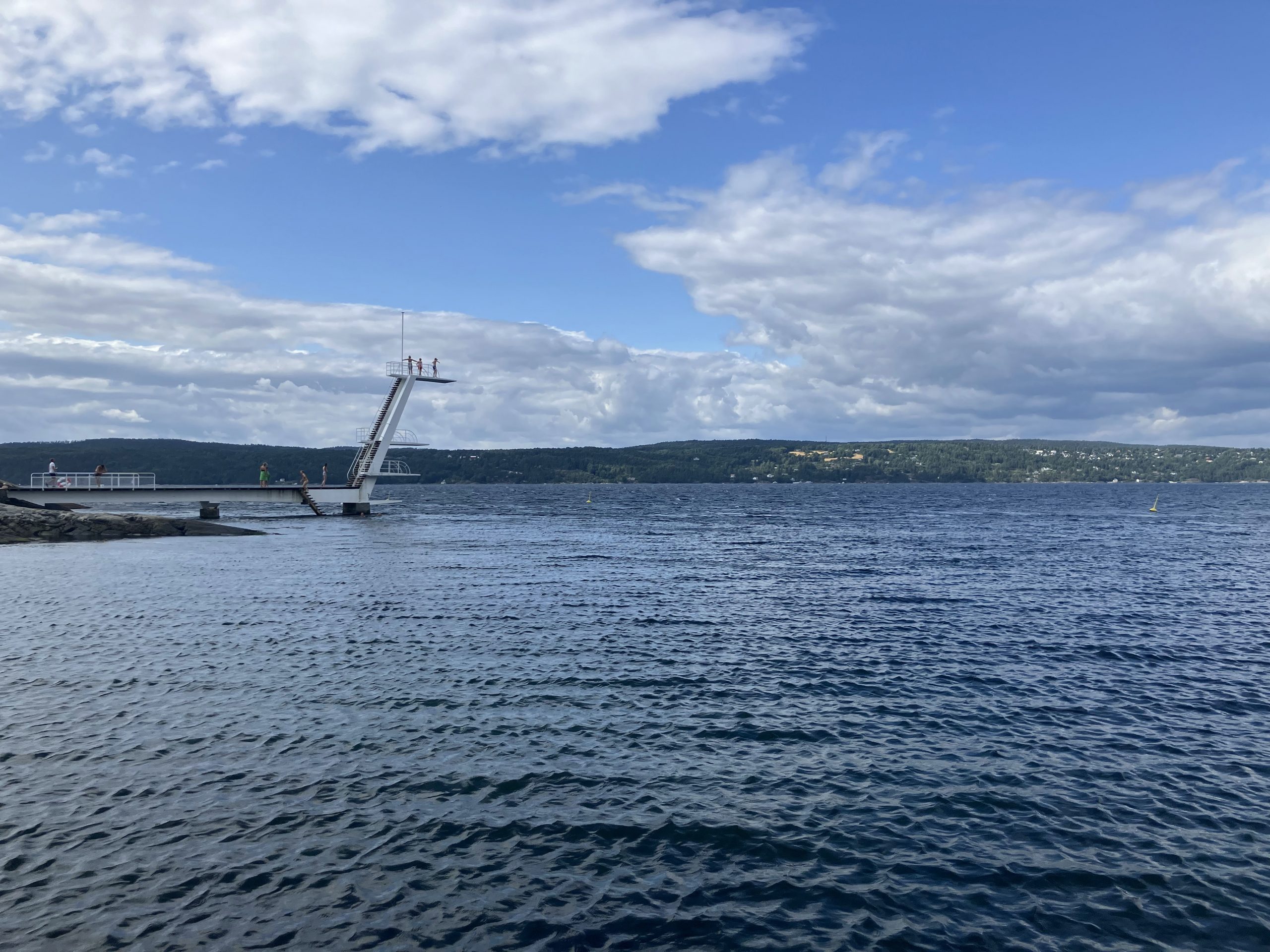 - Exploring the city kept us busy, especially during the first two weeks of August. Annabel and I went to the National Museum, and we went to a few bakeries to try different boller (sweet rolls in various flavors). We also did a lot of swimming. There is a small lake about a ten minute walk from our house. When we first arrived it was pretty cold, but Annabel loves swimming and talked us into jumping in regardless. We also took a bus down the Oslo fjord to Ingierstrand, which has a 10-meter diving tower that Ryan has been wanting to jump off since the last time we were here in summer 2023. (Annabel and I managed the 5-meter tower, but only Ryan braved the tallest one.) We also took a ferry out to Langøyene, which might be our favorite island in the fjord for swimming.