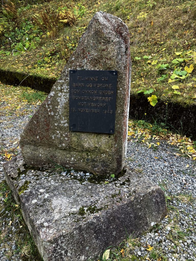 Unlike the Energy Museum in Tyssedal (which I visited in November), the museum at Vemork does not focus primarily on the history of hydropower in Norway. There are several exhibits about the development of industry and local labor movements, but the primary draw to the museum is the heavy water sabotage action. While this initially seemed less relevant to my research project on how hydropower has shaped aesthetic representations of water, I realized that I needed to consider more seriously how Nazi occupation of hydropower plants and the factories built near them would have influenced Norwegians’ understandings of hydropower. It seems likely that the association of hydropower with the production of heavy water and the development of nuclear weapons would have given this technology a more dangerous valence than it had prior to WWII. Since Annabel missed a day of school for the trip, we used the opportunity to learn more about WWII and the resistance in Norway. We had a moment of confronting difficult history when we came across information about the Norwegian civilians who were killed (despite being inside a bomb shelter) when the US and Britain bombed the village in an effort to delay heavy water production at the plant.