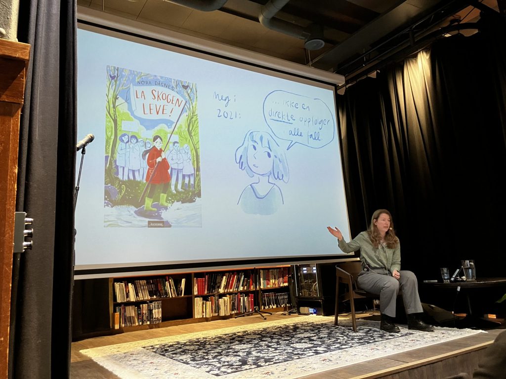 We were also able to catch a talk by comic book author and illustrator Nora Dåsnes during a full-day event for families devoted to comic books. This took place at the Deichman library in Grünerløkka, which has recently been renovated. The library has an entire room devoted just to comics and graphic novels, a total dream. Dåsnes has written several books for an older elementary/middle school audience, and I was really impressed by her ability to communicate clearly but honestly with children about experiences like depression, crushes, and early romantic relationships. She even demonstrated how she draws different emotions on a big screen while taking suggestions from the kids in the audience.