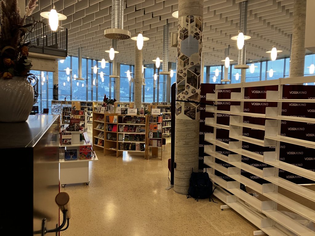 An unanticipated delight of these trips has been visiting so many local libraries. The National Library in Oslo has a similar function the Library of Congress, making it possible to locate almost any resource I need there, and they have also digitized an incredible amount of material. However, the local libraries I’ve visited have often had excellent sections devoted to local history and local authors, and they are beautiful spaces where you can take shelter from the darkness and bad weather. In the future, I will leave more time for the local library when I visit locations relevant for my research.