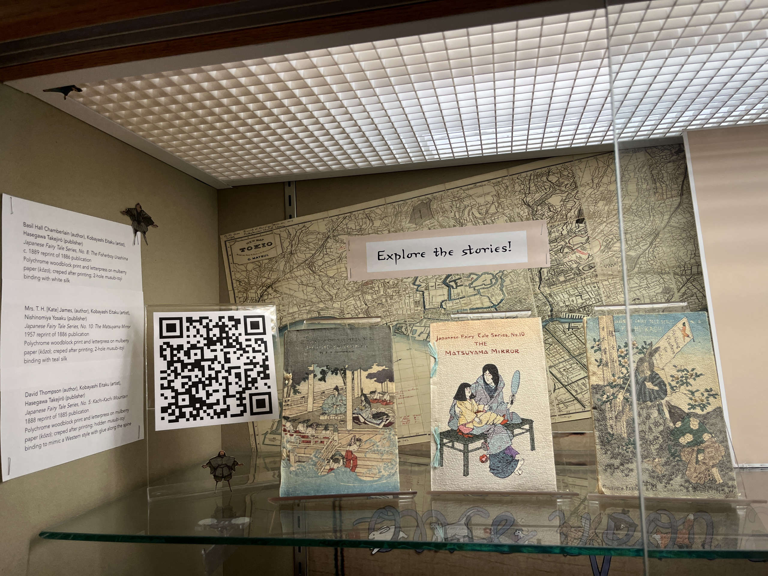 In addition to creating and designing this virtual exhibition, Anika James ’25 and Laura Smith ’25 also curated a physical case display of crepe-paper books. Our goal was to introduce our campus community to this fascinating material in our Special Collections.