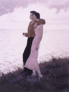 Lithography of Andree Vaurabourg and Arthur Honegger by A.E. Marty in 1932