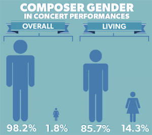 I think Dorf and Moore’s failure to point out that Satie and Poulenc had male privilege was their biggest misstep. Sapphonics is about the theory of rationality for women, not men, and because of their masculinity, I don’t think Satie and Poulenc could have ever really understood what the female experience truly was. As we have seen with Germaine Tailleferre, women, especially female composers, had to deal with a lot more shit (pardon my French) than men. Tailleferre was viewed by her gender first, long before she was ever viewed by the content of her compositions or the genius of her mind. She also had to deal with sexualization, as well as critics who questioned the legitimacy of her work because she was first and foremost female. Satie and Poulenc might have wanted to give off a more “woke” feminine vibe, but the fact that they were endorsing the ideas of women being gentle, simple, and hyper-sexual just explains how un-woke and unaware they really were. Poulenc was able to be flamboyant (he loved costume parties and being naked at them), yet critics and audiences still respected his work, unlike the homosexual Princess de Polignac, who had to show “restraint and decorum” in order to survive in Paris. It was an unfair and unjust system, and in my opinion (and as shown by the image below) this gender stereotyping still widely occurs in the field of music composition today.